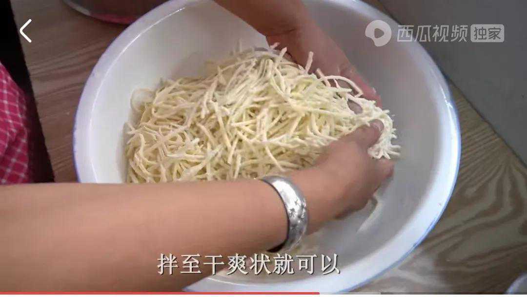 让土豆丝充分的裹匀面粉,看上去每一根都是独立的个体就基本完成。