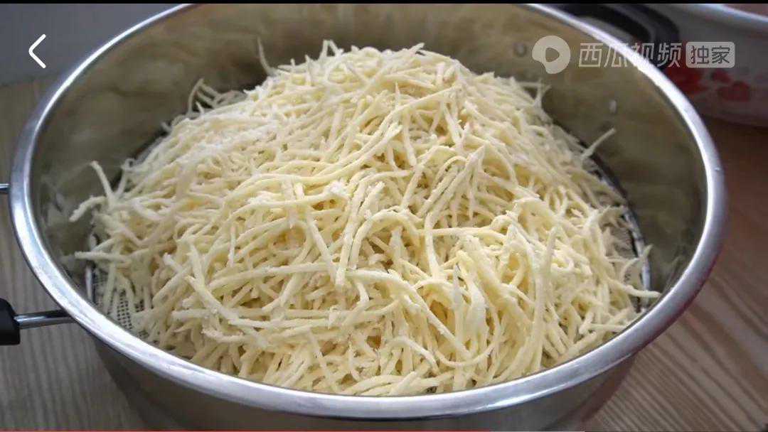 其实这里用面粉,还是会让土豆丝之间粘黏得比较厉害,所以有很多朋友会拿玉米粉搭配面粉,或者直接用全麦面粉,以此来降低粘黏性。