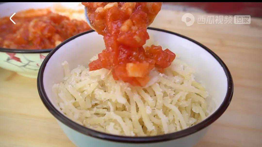 开盖后,赶紧拿筷子稍稍抖散土豆丝,防止粘黏太厉害。