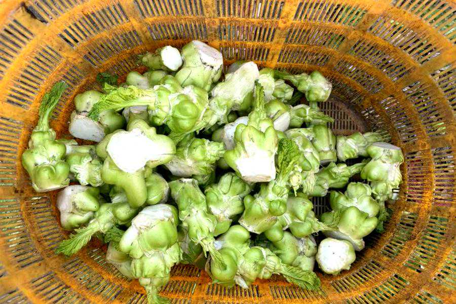说起榨菜,就不得不说一说芥菜。其变种繁多,湘北地区农民栽种的品种,主要包括雪里蕻、儿菜(芽用芥菜)、宽柄芥菜(做酸菜用)、榨菜(茎用芥菜)、菜头(茎瘤芥,即芥菜的茎变种)。而榨菜呢,属十字花科芸薹属草本植物,地下有较大的瘤茎,其表皮青绿皱裂,肉质白厚,质地脆嫩,新鲜的榨菜切片与风吹肉同煮,喝汤如饮鸡汤;以小米椒碎为佐料,将榨菜用来炒肉片,也是下酒的“快手菜”;将切丝的榨菜撩水,用盐腌制后抓去水分,炒干水汽,放麻油、辣椒油生吃,也是上好的凉菜。