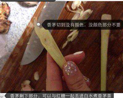 拨虾皮时留了虾尾,只是为了美观啊~哈哈切剩的香茅不要丢啊~留着和红糖一起丢进白水煮香茅茶~