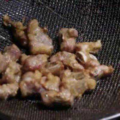 5、炸制排骨·三成油温,排骨下锅油炸,炸到色泽金黄,捞出备用;