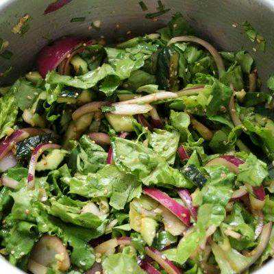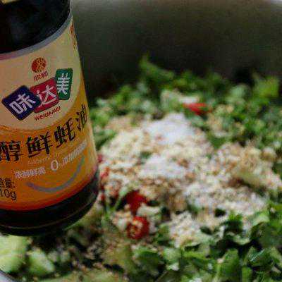 简介By杜小雨辰用料生菜1颗蒜头2颗醋1勺盐10克洋葱1个黄瓜1根熟芝麻1勺小米辣2个小葱1根香菜1根白糖2勺蚝油2勺生抽2勺做法步骤1、生菜洗净切段2、洋葱切条,提前泡10分钟3、黄瓜切小块4、加入切好的葱花,香菜,熟芝麻,小米辣和白糖5、加一勺盐6、一勺鸡精7、2勺蚝油8、两勺生抽9、两勺芝麻酱10...