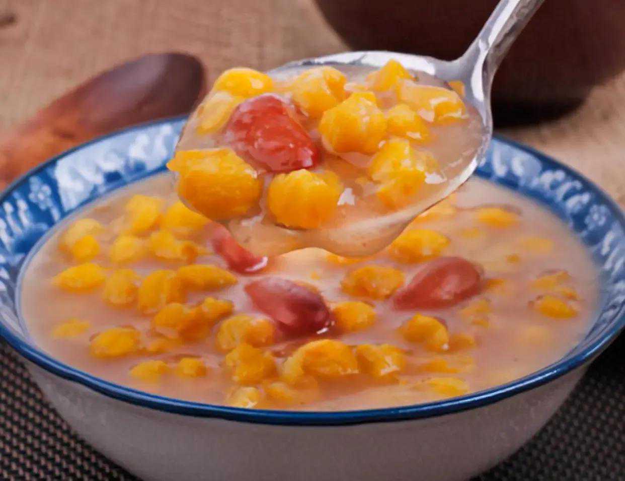 来东北可不要忘了,早餐来一碗热乎乎满是粗粮的大碴粥,它是东北特色美食,主要是用粗粮熬制而成,里面主料是大玉米粒,还掺入一些豆子,薏米等,饱腹感很强。一般东北人早上吃大碴粥的时候,还会搭配一些东北蘸酱或是还有鸡蛋酱,很是过瘾。