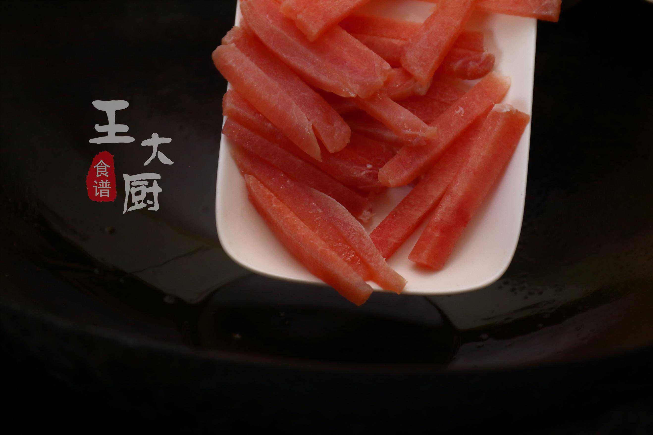 3、起锅烧油,将准备好的肉丝放在锅中进行翻炒。