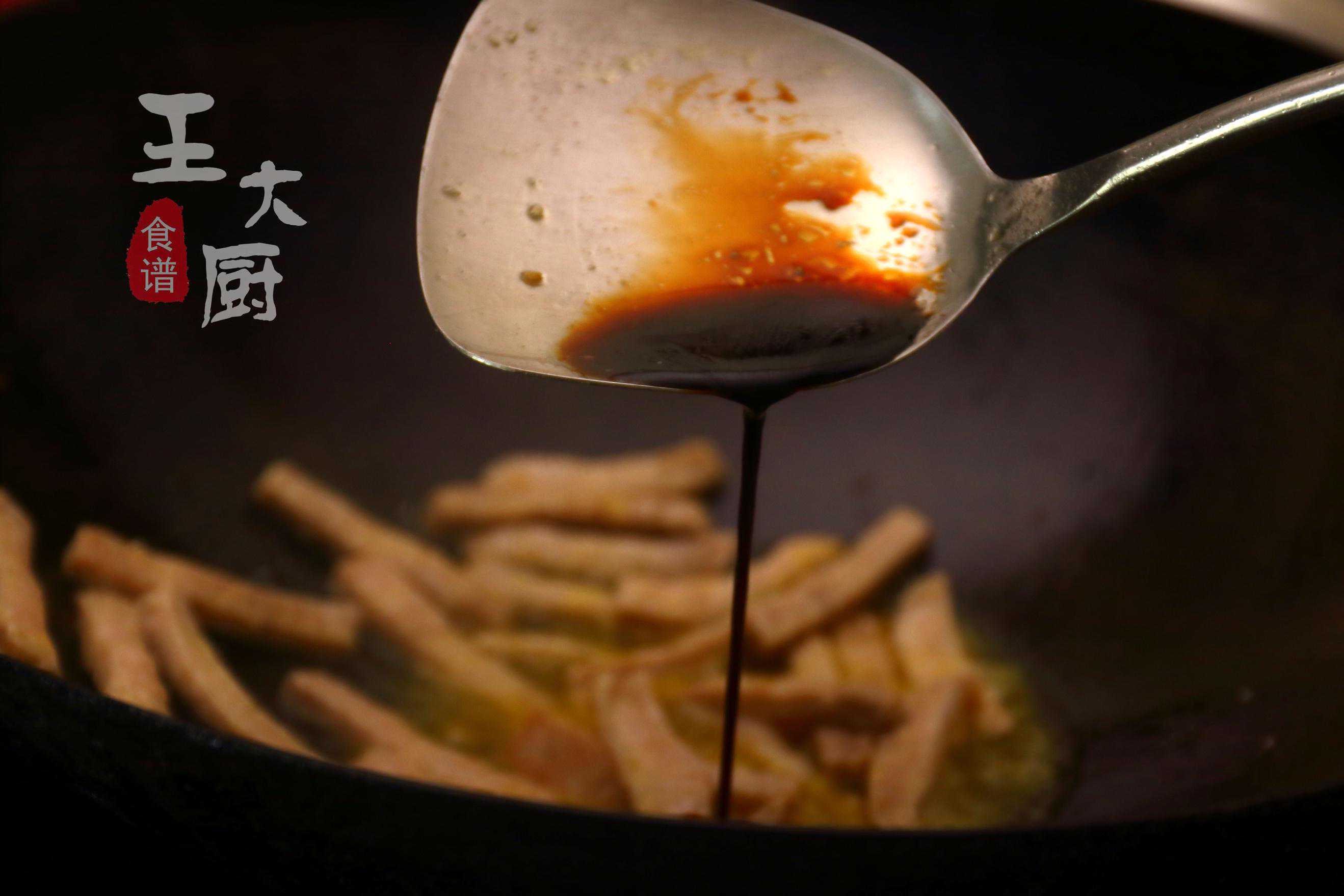 6、等肉条煸的差不多熟了,将准备好的葱段放在锅中,翻炒一下。