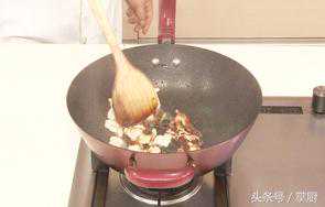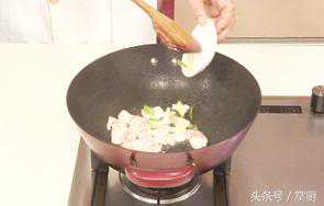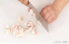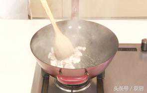 6用油起锅,放入切好的五花肉片,翻炒数下。