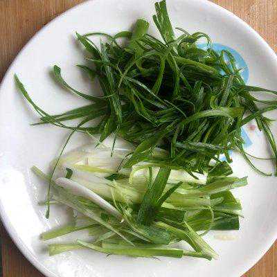 6、香菜切成小段,放入洋葱,木耳,调入拌好的拌菜料