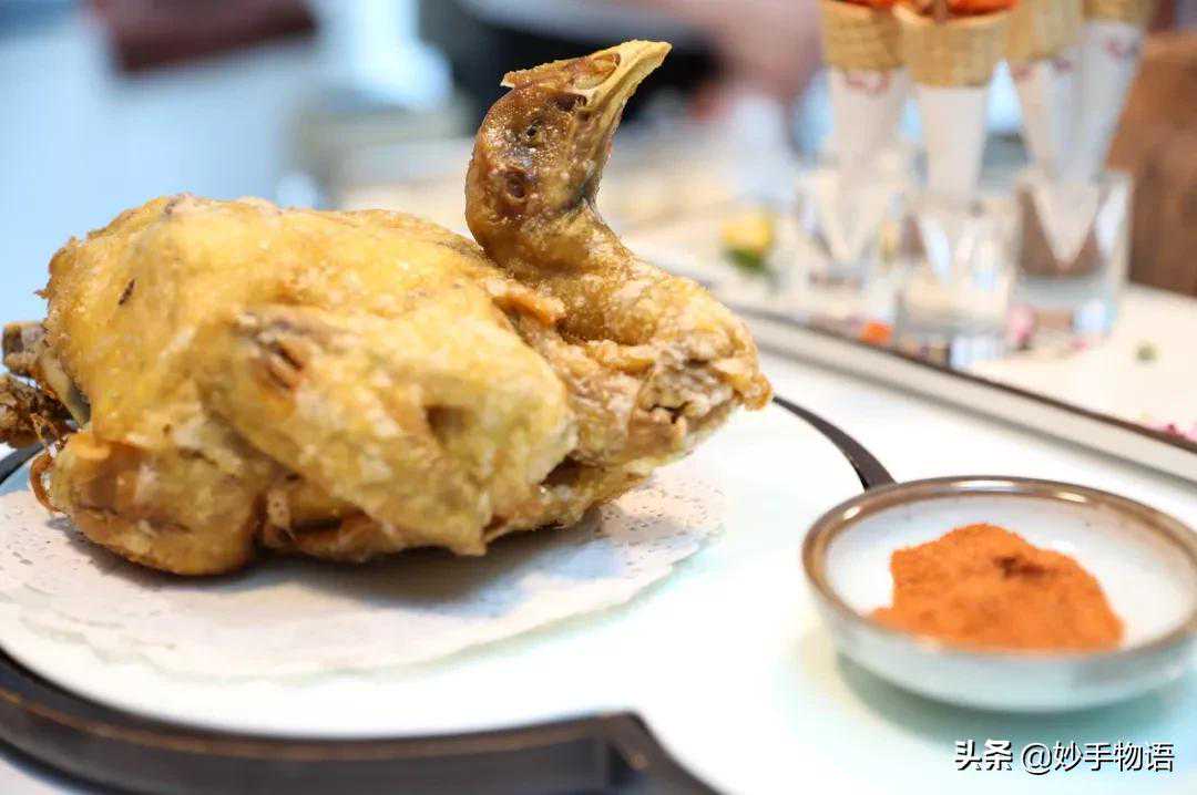 罾蹦鲤鱼相传此菜出于〔清〕光绪末年的“天一坊”饭庄。据陆辛农《食事杂诗辑》载:1900年八国联军侵占天津,纵兵行抢。流氓地痞趁火打劫后,来至“天一坊”大吃大喝。叫茶时,误将“青虾炸蹦两吃”呼为“罾蹦鱼”。侍者为之纠正,叫菜人恼羞成怒,欲要闹事。照应人(主持饭庄服务的“堂头”)劝告说有此菜,“说此侍者新来不识,责其入告灶上。人正惊讶,照应人急入,使择大活鲤,宰杀去脏留鳞,沸油速炸,捞出盛盘浇汁,全尾乍鳞,脆嫩香美,从此乃有此菜至今。”陆氏并有诗云:“北箔南罡百世渔,东西淀说海神居,名传第一白洋鲤,烹做津沽罾蹦鱼”,以纪其事。