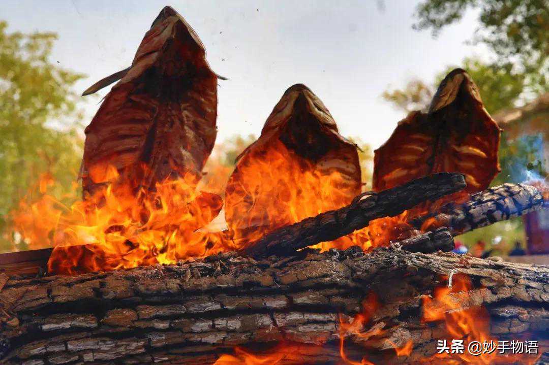 夕阳西下,刀郎人在叶尔羌河畔燃起篝火,制作美味的烤鱼,在烘烤过程中,新鲜的红柳枝会分泌出红柳汁液,使得鱼肉更加美味,这是其它地方所没有的味道。汉朝张骞出使西域路过此地,曾与当地人一起烤鱼,觉得味道特别鲜美,就把技术带回中原地区。可惜的是,中原地区没有胡杨和红柳枝,怎么也烤不出新疆巴楚烤鱼的独特香味。