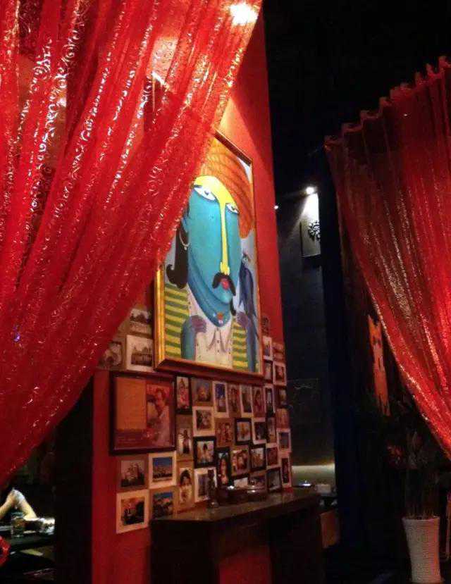 往里走会看到大大小小的照片墙,照片都是老板去印度时候照的。一张张裱起来挂在墙上,细细浏览感觉就像跟着老板一起到了印度,哈哈~