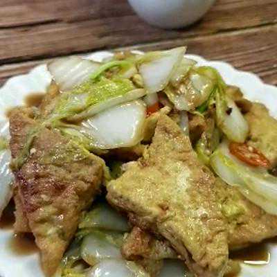 简介冬天的百搭,白菜豆腐怎么吃都好吃,一起来试试吧!By安娜苏三用料北豆腐1块大娃娃菜半个香葱1根鸡蛋1个葱姜蒜末少许小米辣3个耗油1勺生抽2勺老抽半勺鸡精半勺盐半勺香油半勺做法步骤1、豆腐切块裹一层鸡蛋液,下油锅煎至两面金黄盛出备用2、下葱姜蒜,小米辣爆香。下白菜煸炒,下炸好的豆腐,倒入提前调好的料汁...