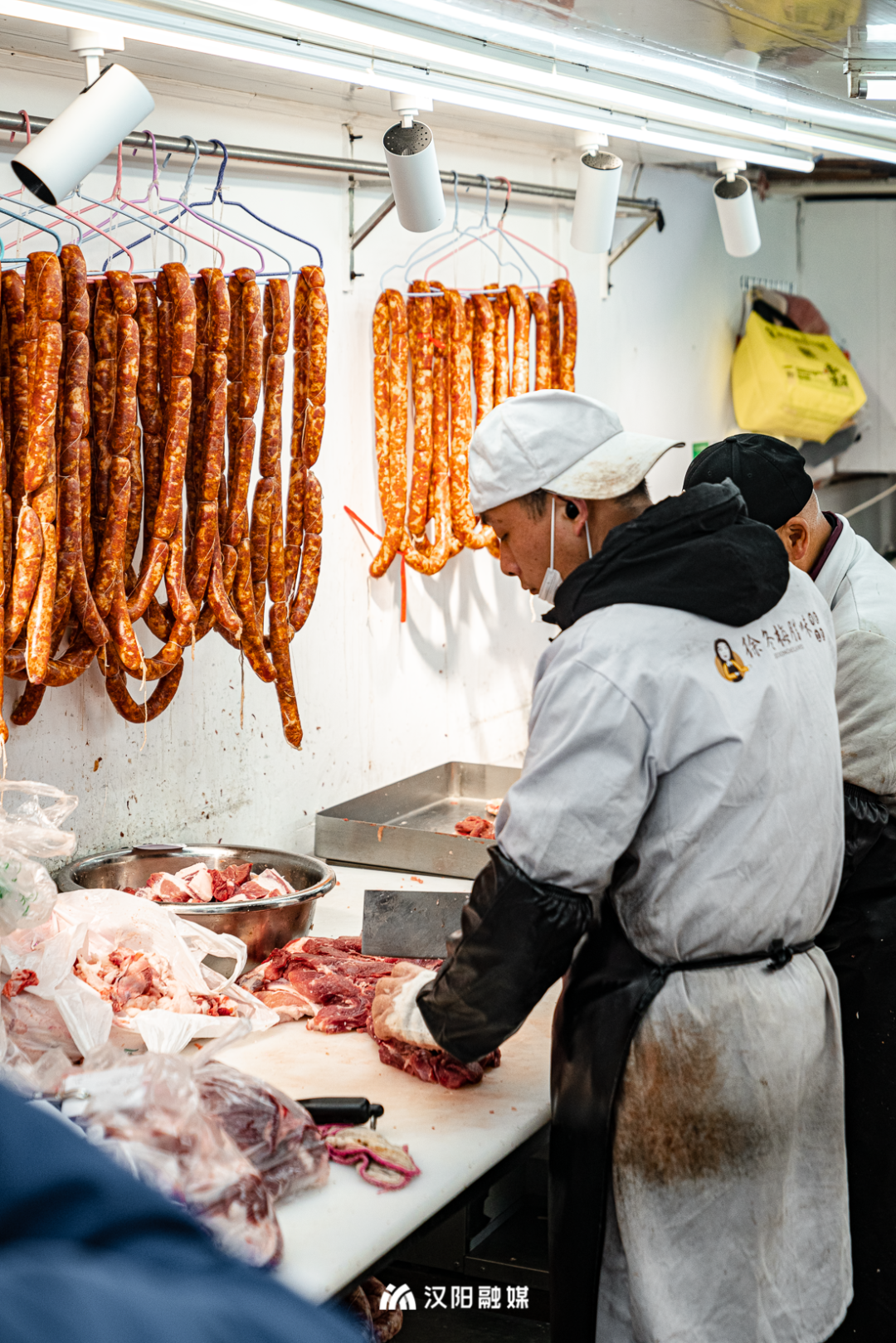 香肠肥瘦相间,恰到好处。别看被肠衣包裹的香肠和烟熏过的腊肉外表很普通,但却是汉阳人心里最亲切的年味。
