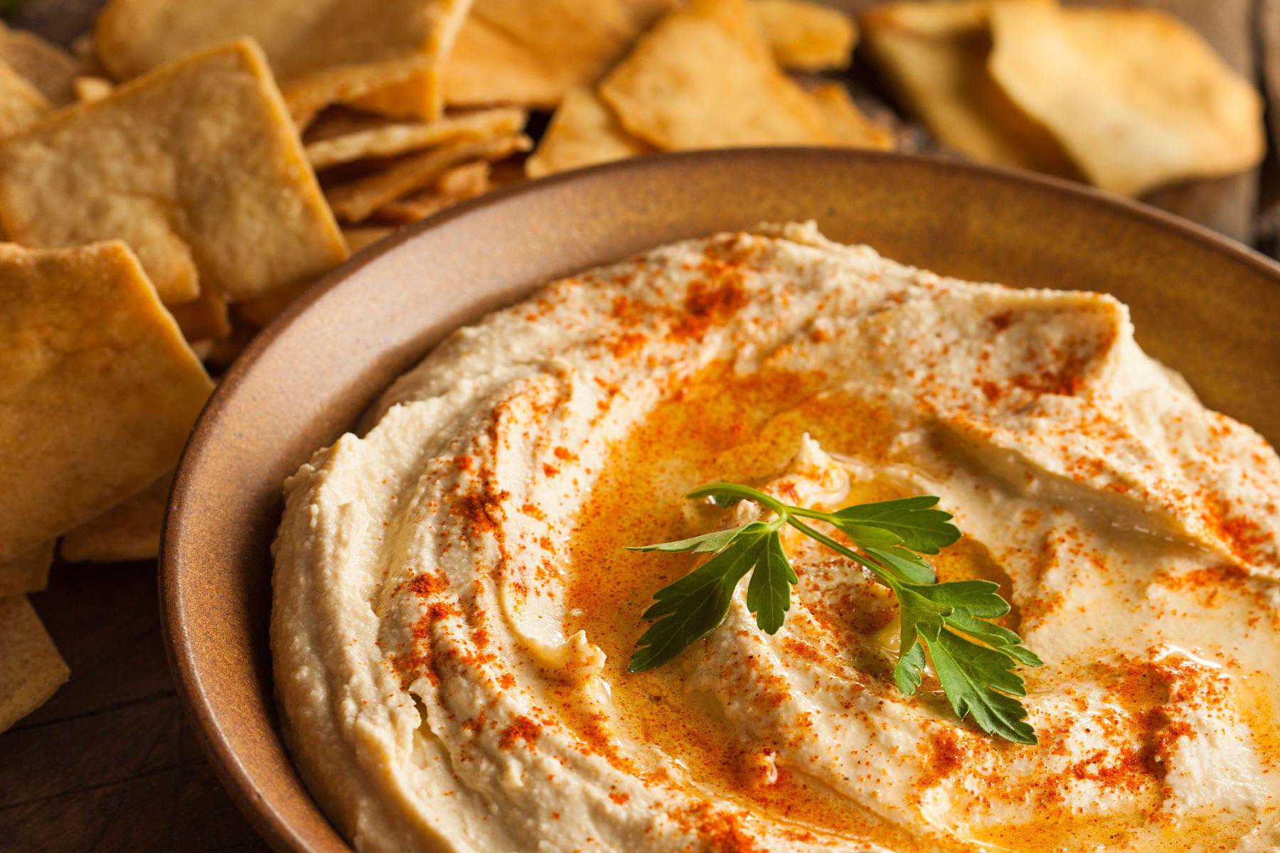 这种鹰嘴豆泥除了鹰嘴豆之外,还加入了芝麻酱、柠檬汁以及大蒜。吃的时候,可以淋上橄榄油,当做蔬菜的蘸料或大饼的调味馅料。