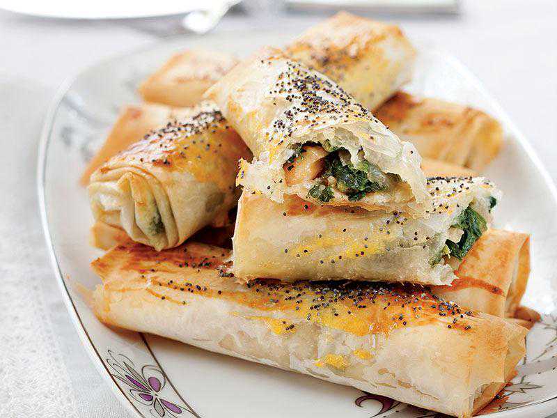 传统上这种薄饼里面都是奶酪和欧芹。烘烤前,需要把面团浸入水、橄榄油、牛奶和鸡蛋的混合物里,这样饼皮会变得鲜嫩多汁。