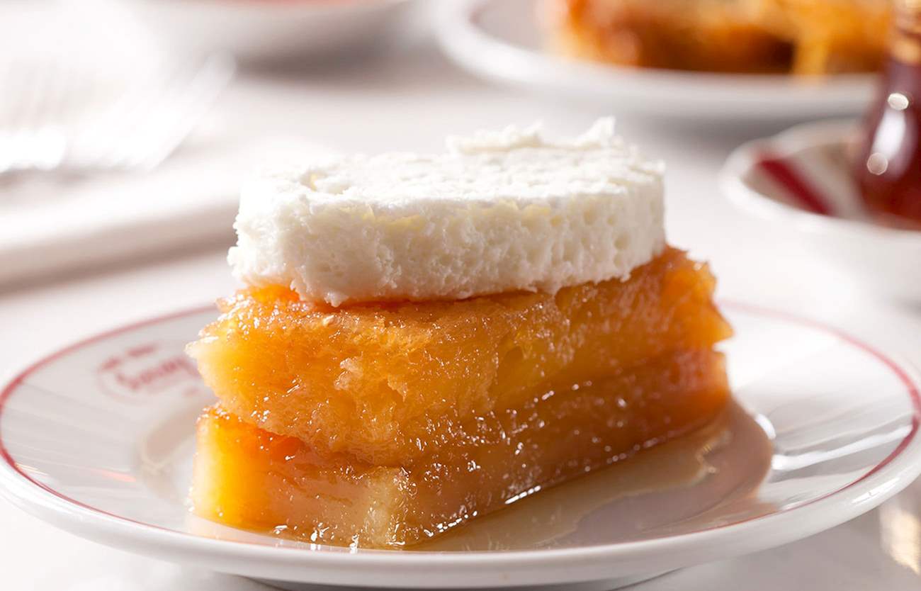 Ekmekkadayıfı是一种淋了糖浆的面包干,上面还会放厚厚的一团叫“kaymak”的土耳其凝脂奶油,再撒上一些开心果或核桃。