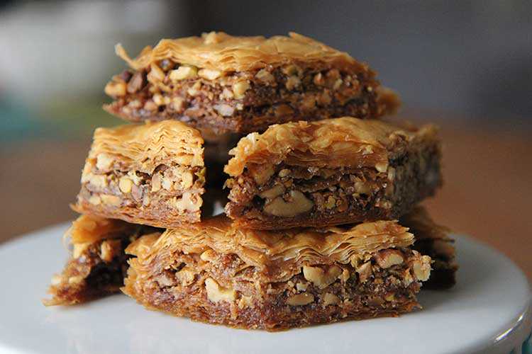 巴克拉瓦就是果仁蜜饼,是一种夹着坚果碎的薄酥饼,上面还淋着黏稠的糖浆。