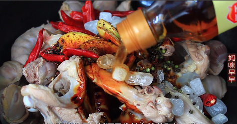 配料:生姜20克生抽120克,老抽100克,料酒460克,花椒18克,麻椒18克,干红辣椒15克,冰糖80克,桂皮1块,香叶3片