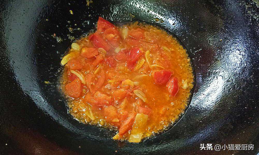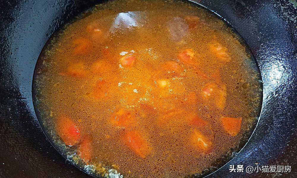 (5)西红柿要炒出汁,炒出汁西红柿才出味,同时要多炖煮一会,把酸味炖出来。