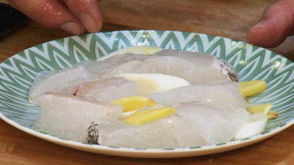 步骤1:将鳕鱼解冻后切块,用小葱和姜片略腌制十分钟。