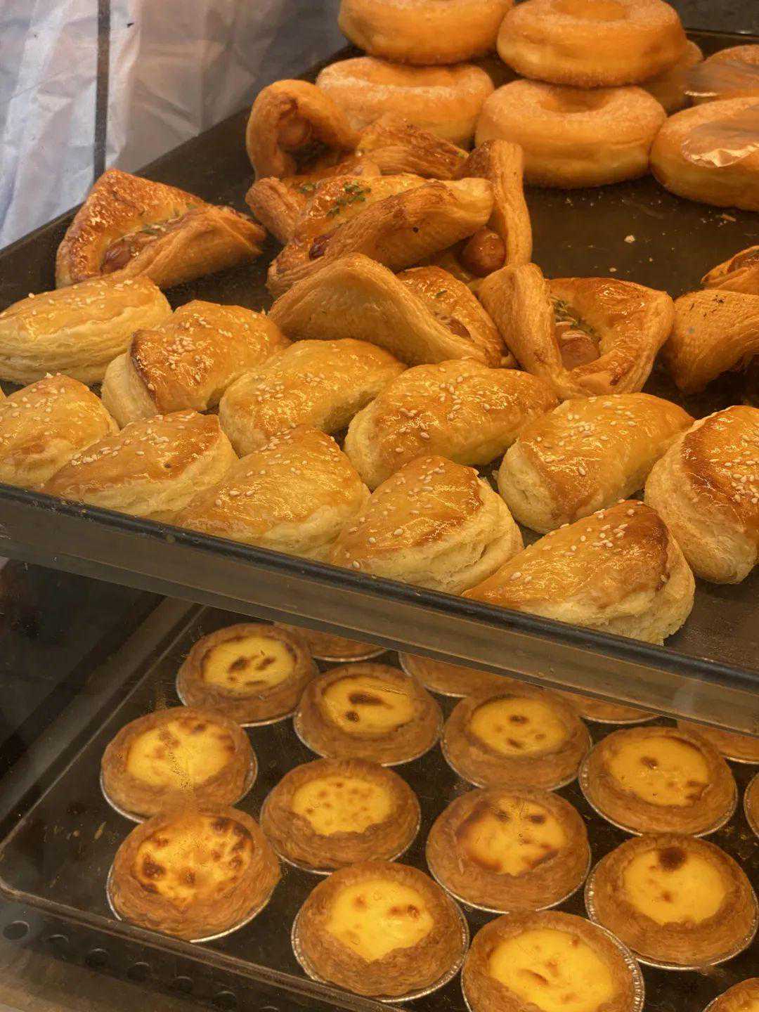 放眼过去,可以看到牛角包、小热狗、甜甜圈、榴莲酥等等。