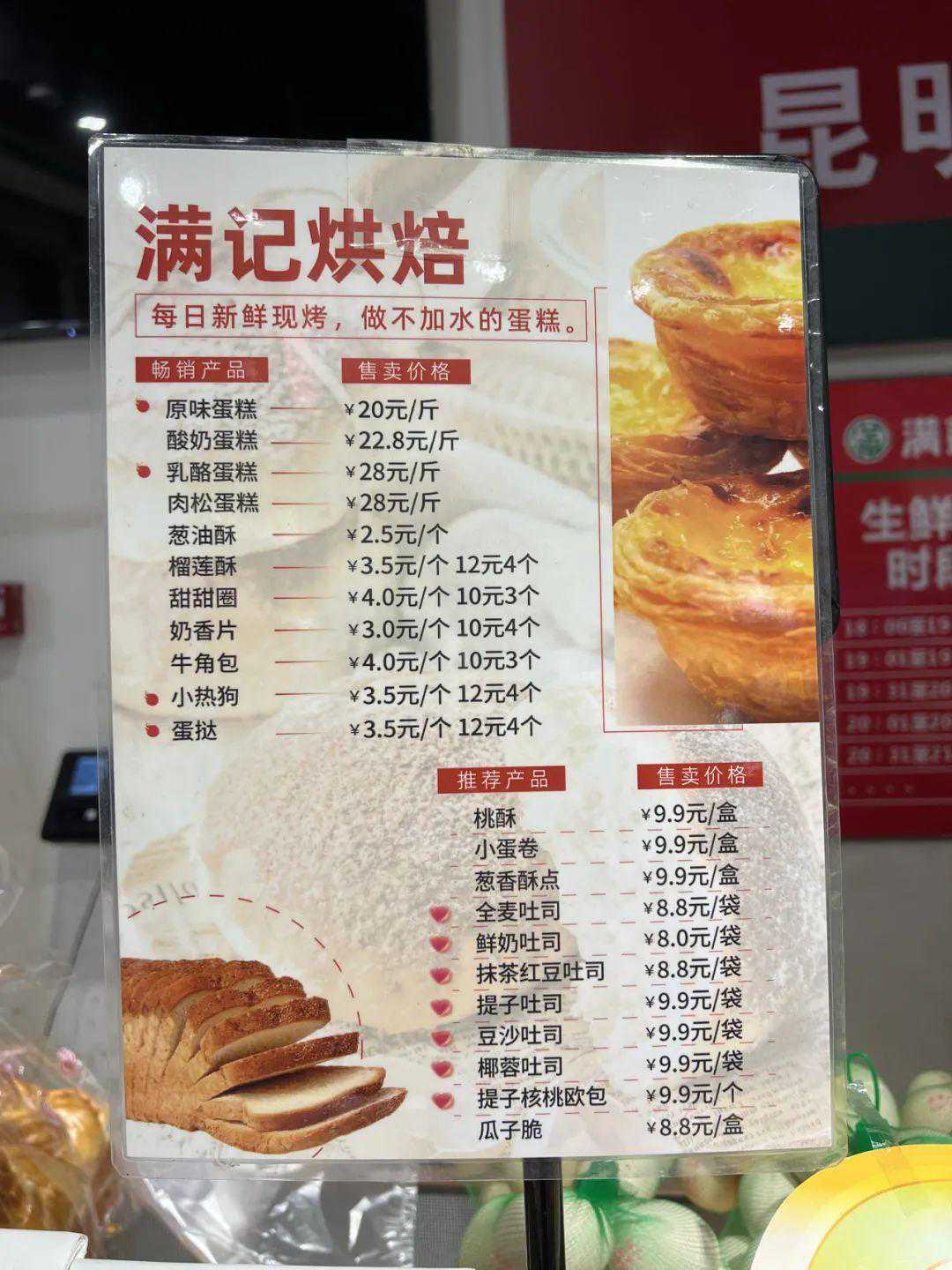 满彭一天有两次供应,早上供应的是吐司桃酥蛋卷,走的是老式路线,中午供应的才是现烤蛋糕,营造的是年轻思路。