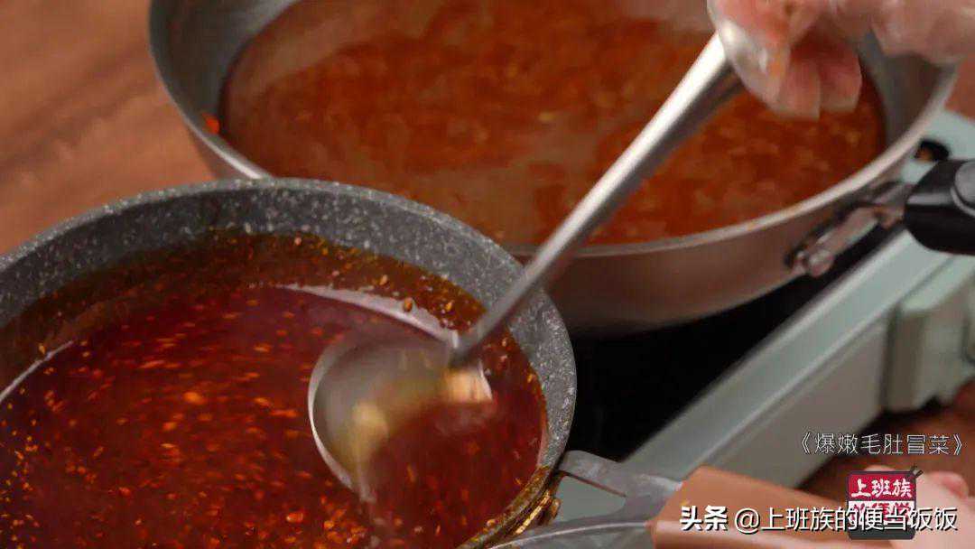 然后找个锅,来点油泼辣子,舀上几勺汤,搅一搅~