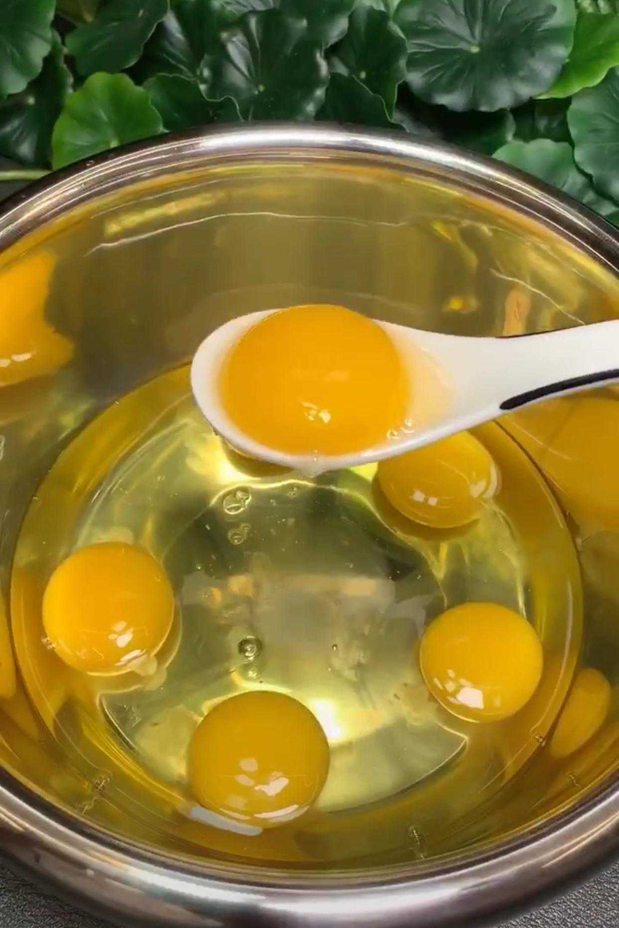 1、电饭煲提前预热两分钟,盆中打入六个鸡蛋,将蛋清蛋黄分离。