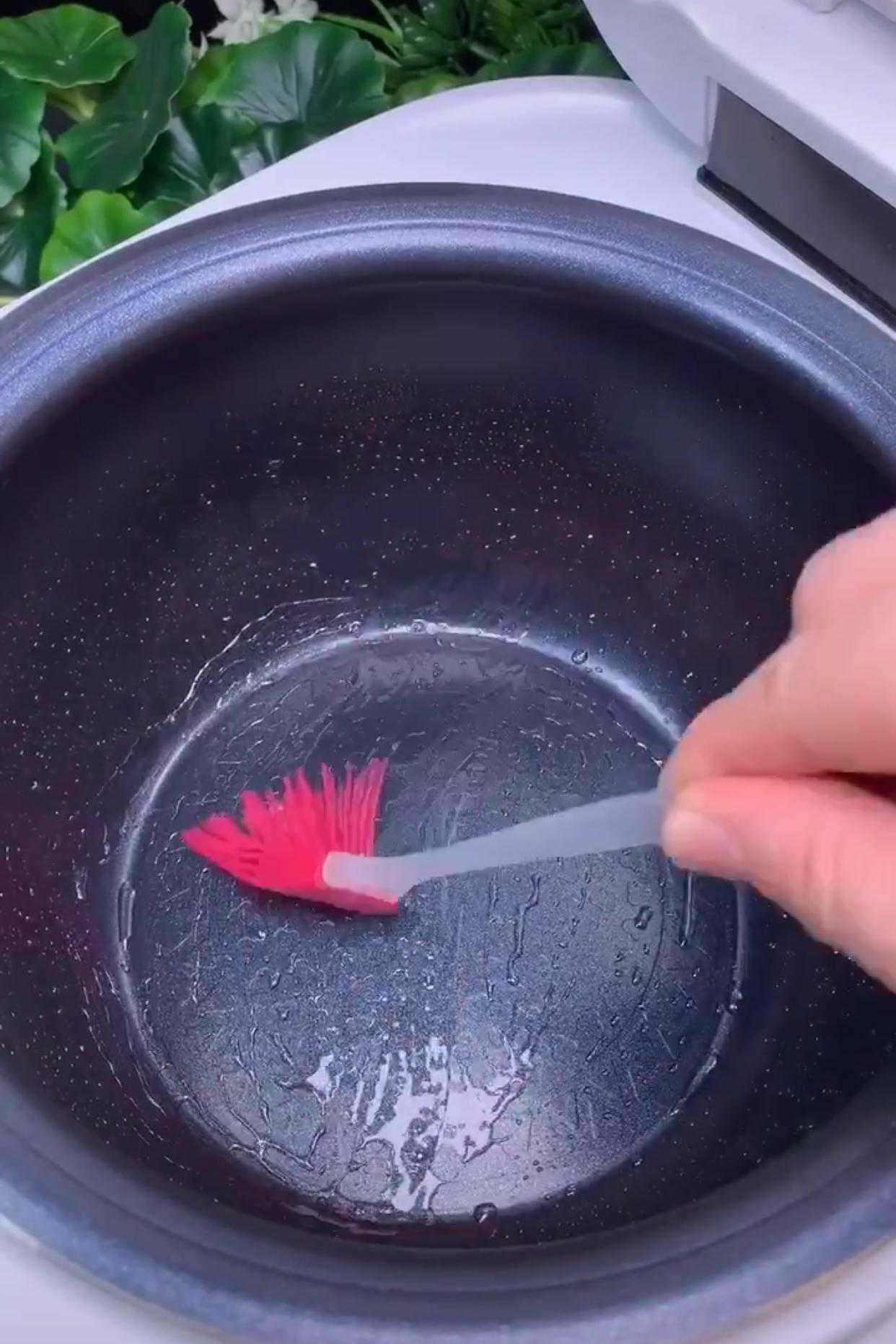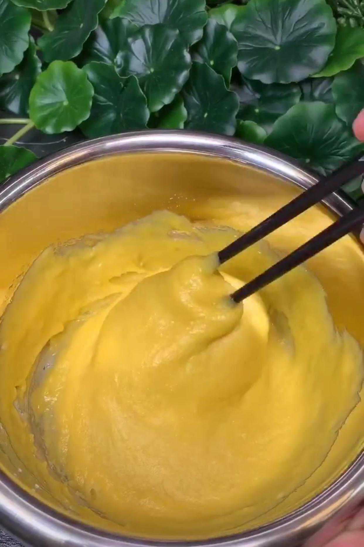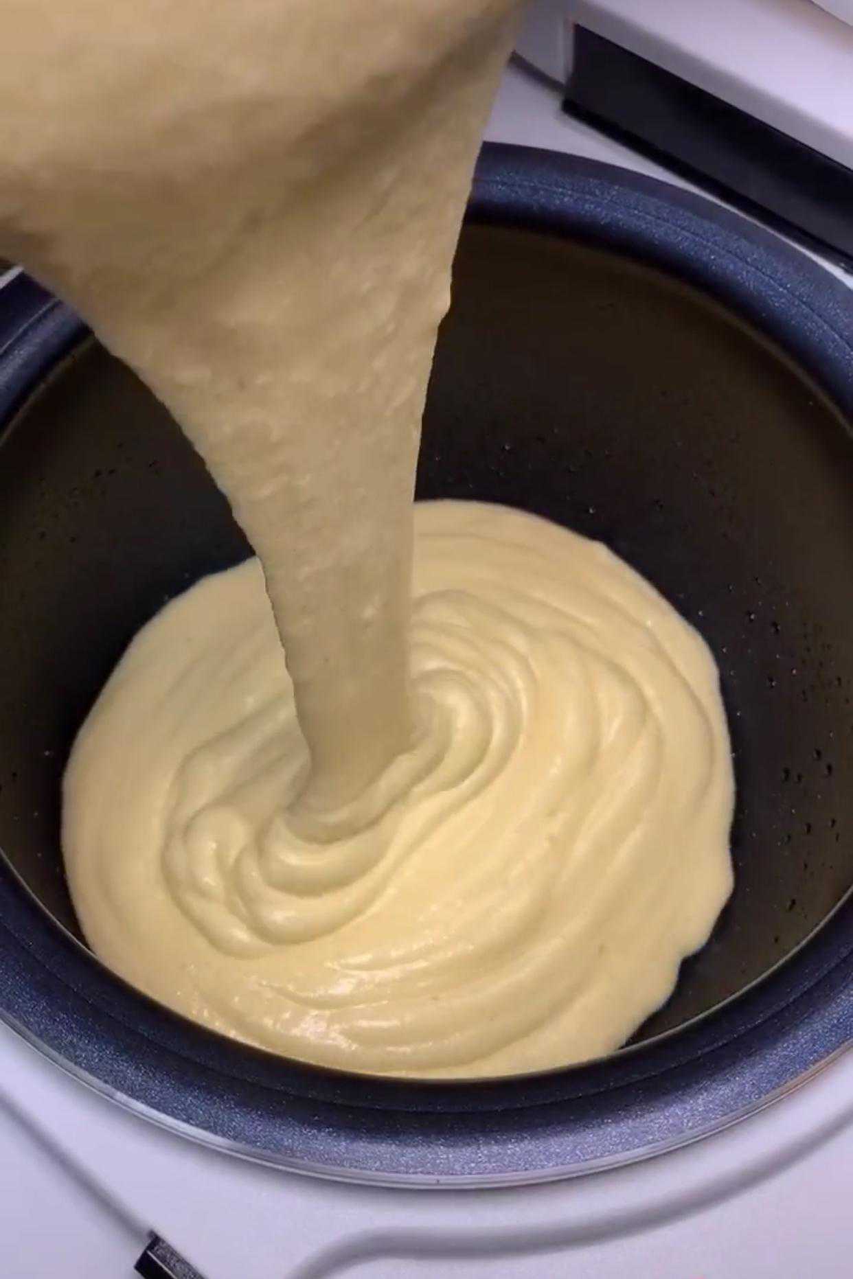 6、电饭锅内刷油,倒入蛋糕糊,按煮饭键蒸熟后,再蒸十分钟,取出脱模即可。