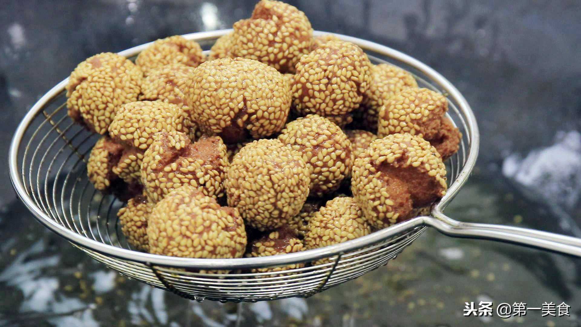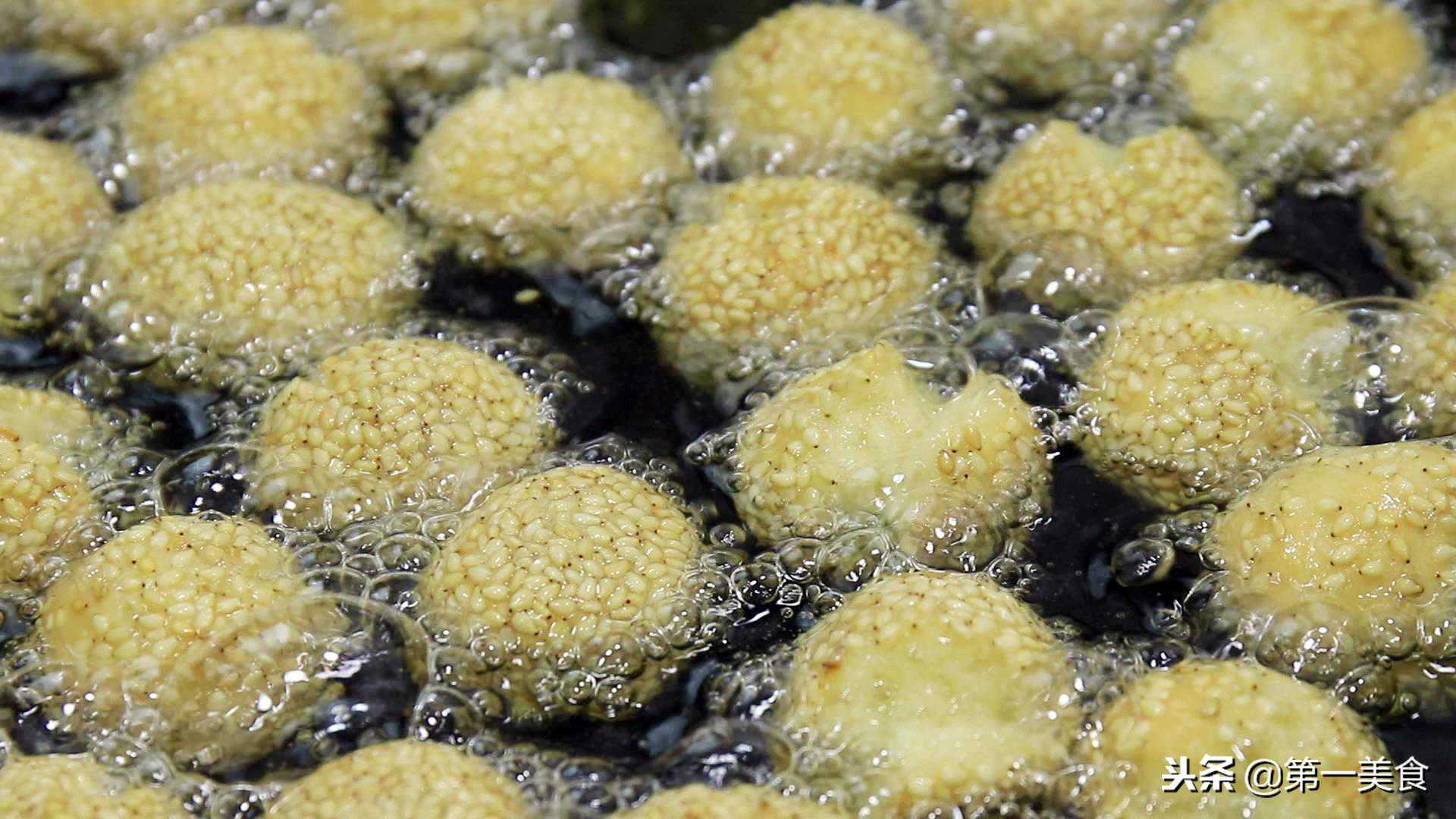 团一团芝麻会裹的更结实,在油炸的过程中不容易掉落。