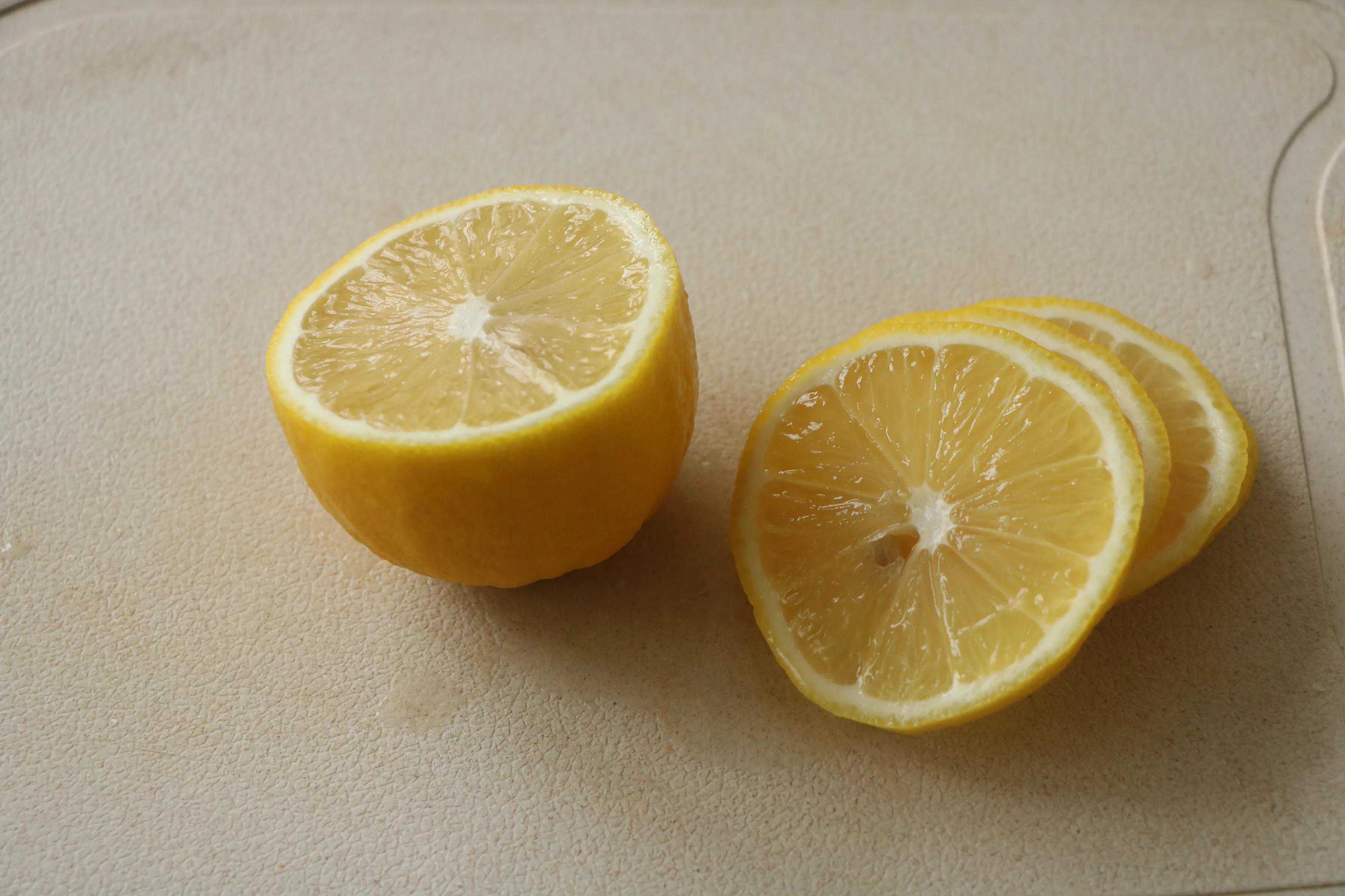 4、柠檬加点盐把表皮搓洗干净,然后切成薄片;