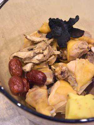 2、把处理好的母鸡、姜,连同当归、熟地黄、川芎、白芍,红枣一同放入锅中