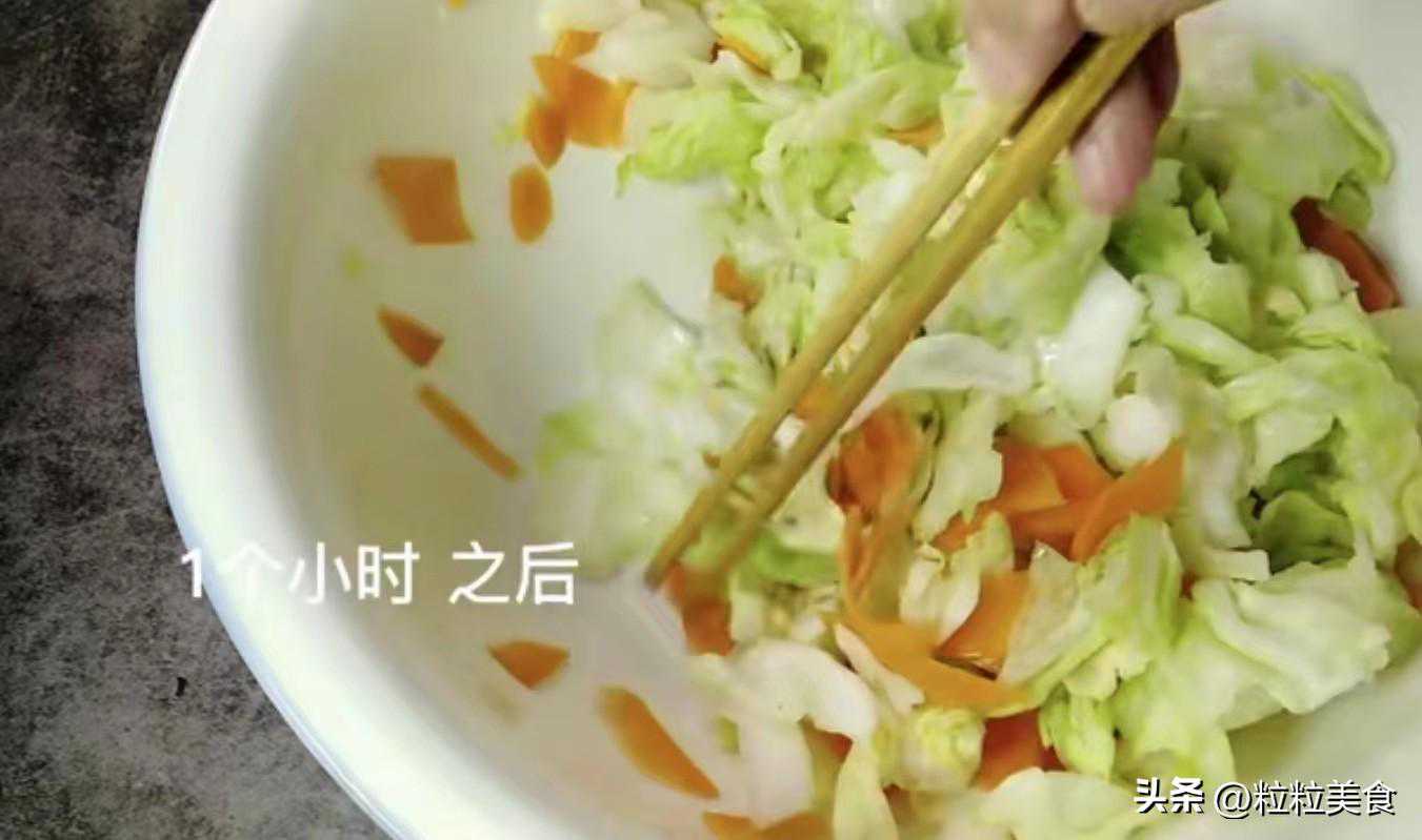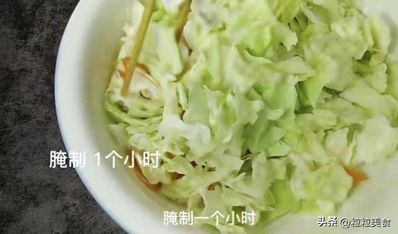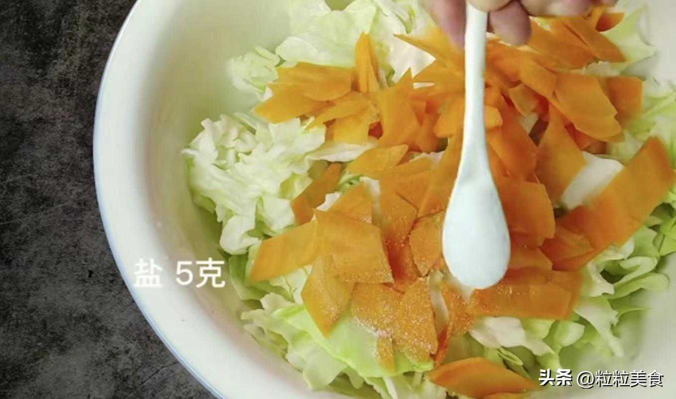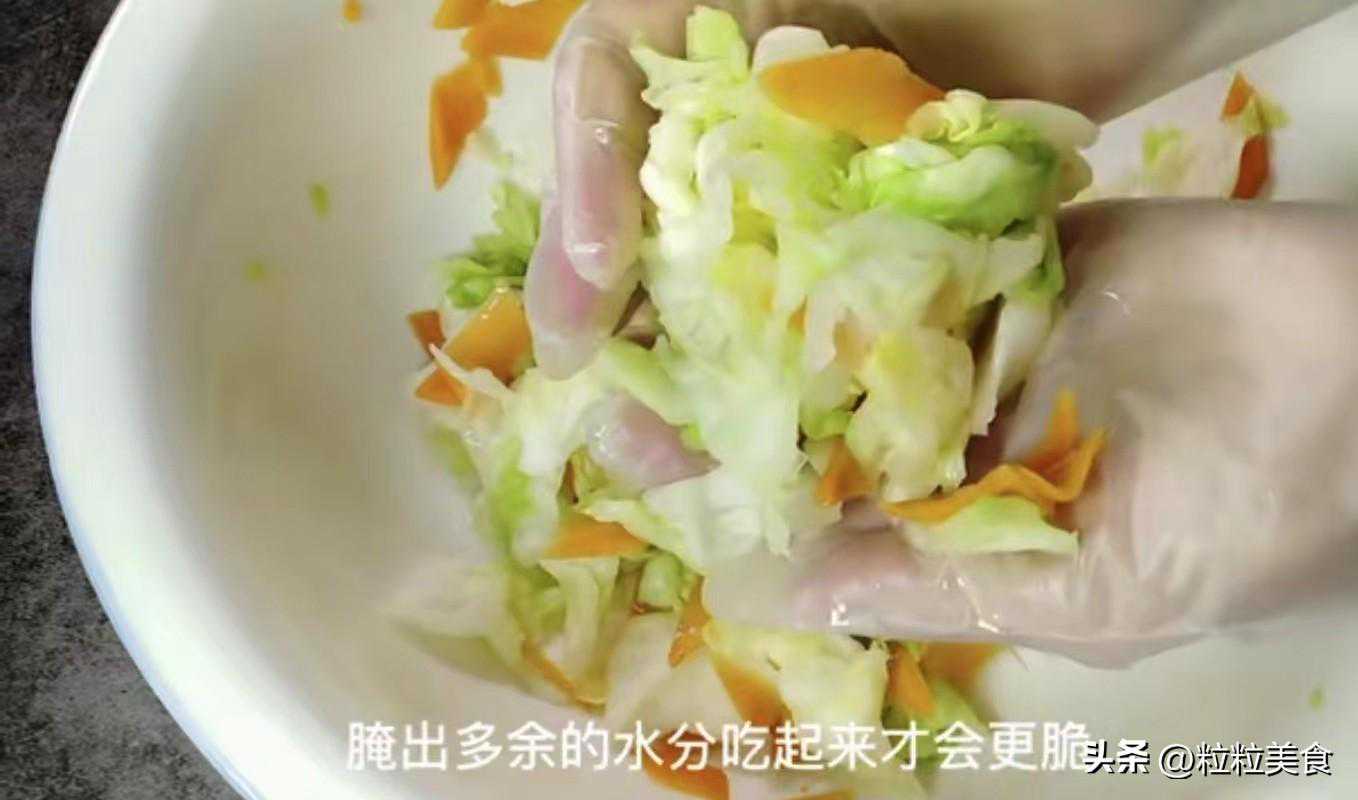 包菜加盐腌制这一步一定不能少,腌出多余的水分,吃起来才会更脆。