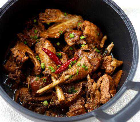 3、步骤8中鸡肉下锅翻炒两三分钟,这样能有效的炒干鸭肉表皮的水份,最后焖时可以更好的吸收汤汁