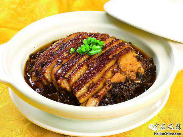 客家人是中原南下的移民,由于种种历史的原因,迁至岭南山区后,完整地保留了中原的语言与饮食习惯;而且,由于客家人居住地区大都是远离海洋,客家菜便以内陆型的油重味浓、咸香软糯为特色,即客家话说的“肥、咸、香”。