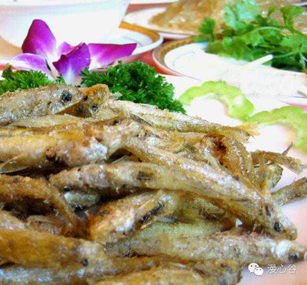 选一指长的山坑鱼,将其洗净后用干毛巾吸干水分,放盐、味精、鸡蛋黄、生粉拌匀,用煎镬煎到金黄色,放点豉油、葱花,即可上碟。
