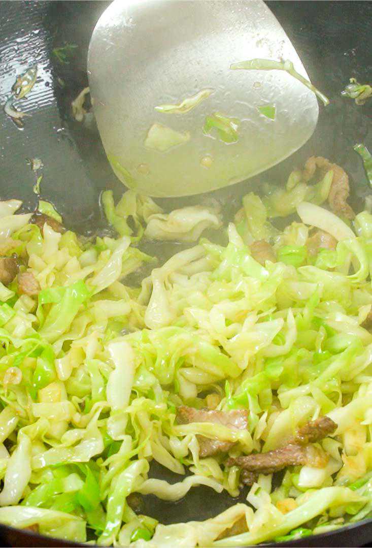 3卷心菜是有水气的,所以炒制中用大火,也不需要加入其他任何水分,要快速翻炒,当其变软后,即可进行大火翻炒河粉,这样的炒制就是能够达到基本要求的。