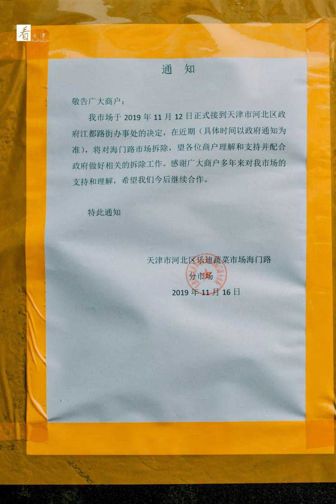 前两天,看到一条新闻,说是河北区的海门路菜市场,要拆了?从微博上看到政府官方的通告已经贴出,看来这一次拆除是真的了。
