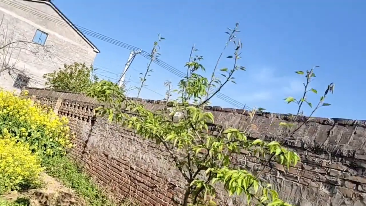 看看这小花园,油菜花长多好,扑鼻的香。那边是葱、油菜,看这桃,都叫我掐完了,回老家。这不是清明节放假回老家,这菜坛一戳可好吃,看看好不好,无公害的,没有打药。这边是一大片香菜,看看好吧,根本吃不完。那边一大片油菜,这边是一片蒜苗,蒜苗,这个看看认识不认识,这是韭菜。那边是啥?这边是啥?小葱,比农村种一片地根本都吃不完。