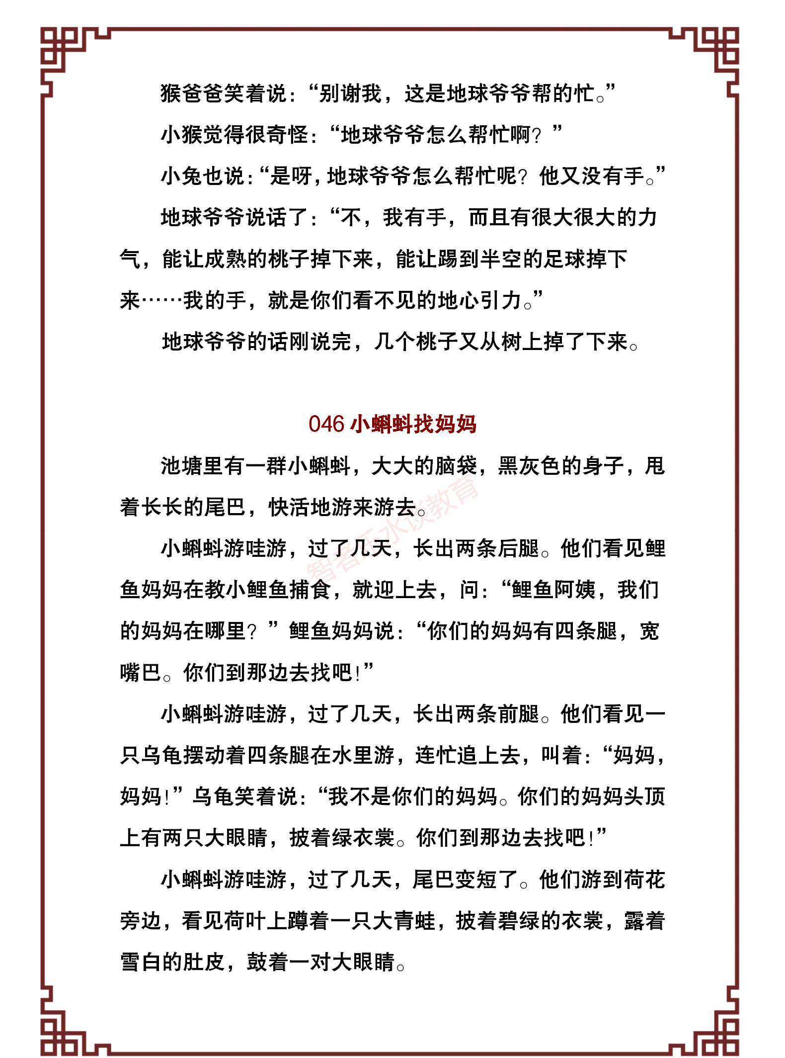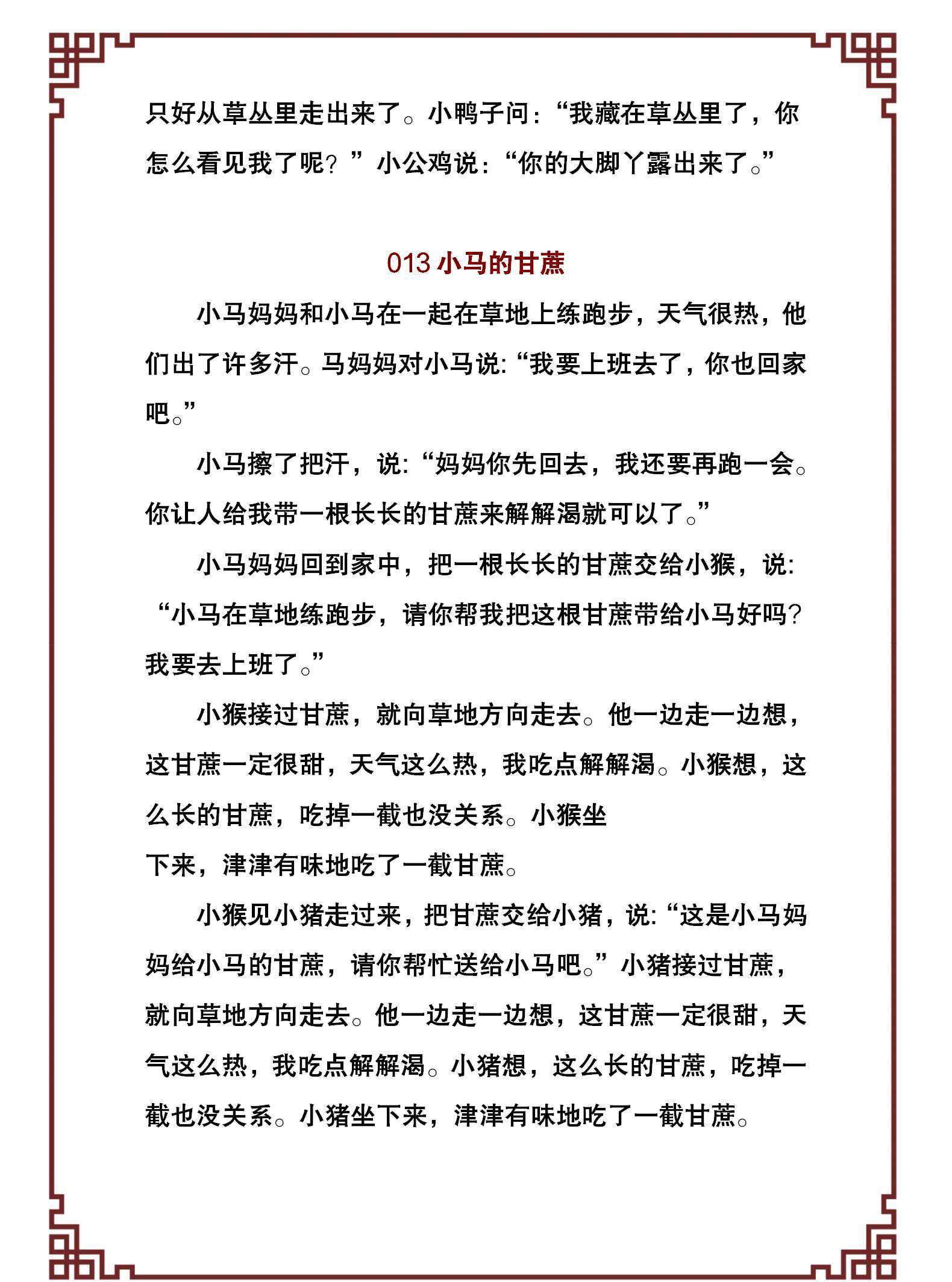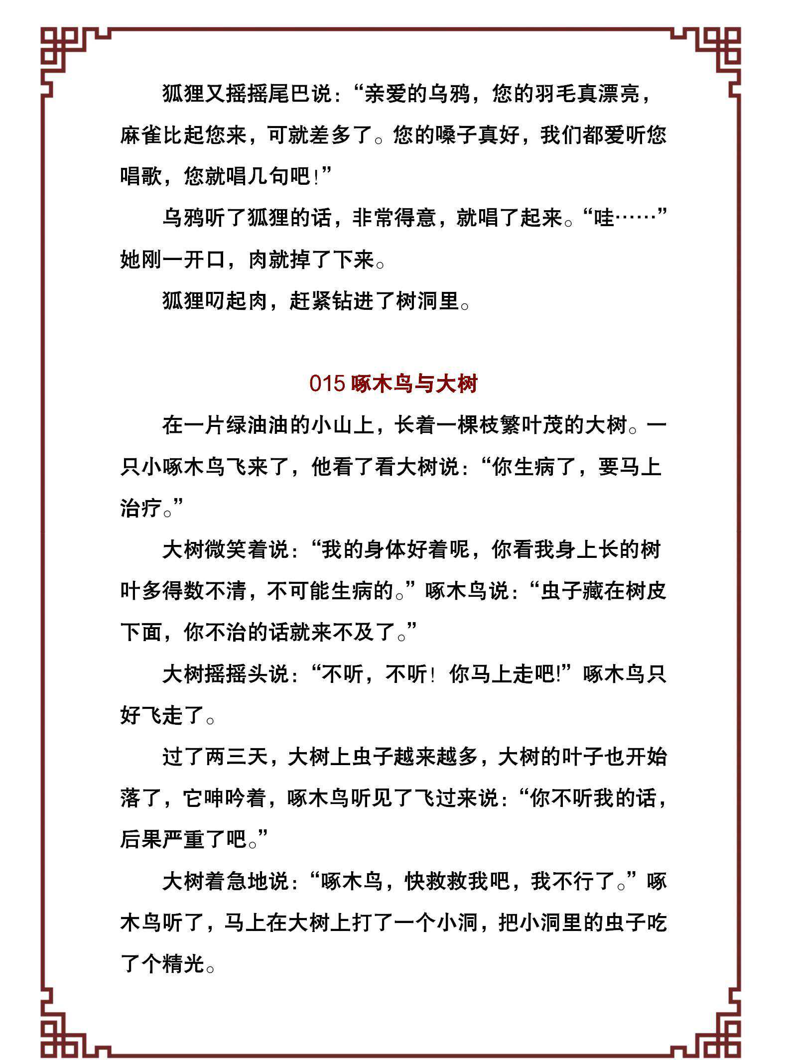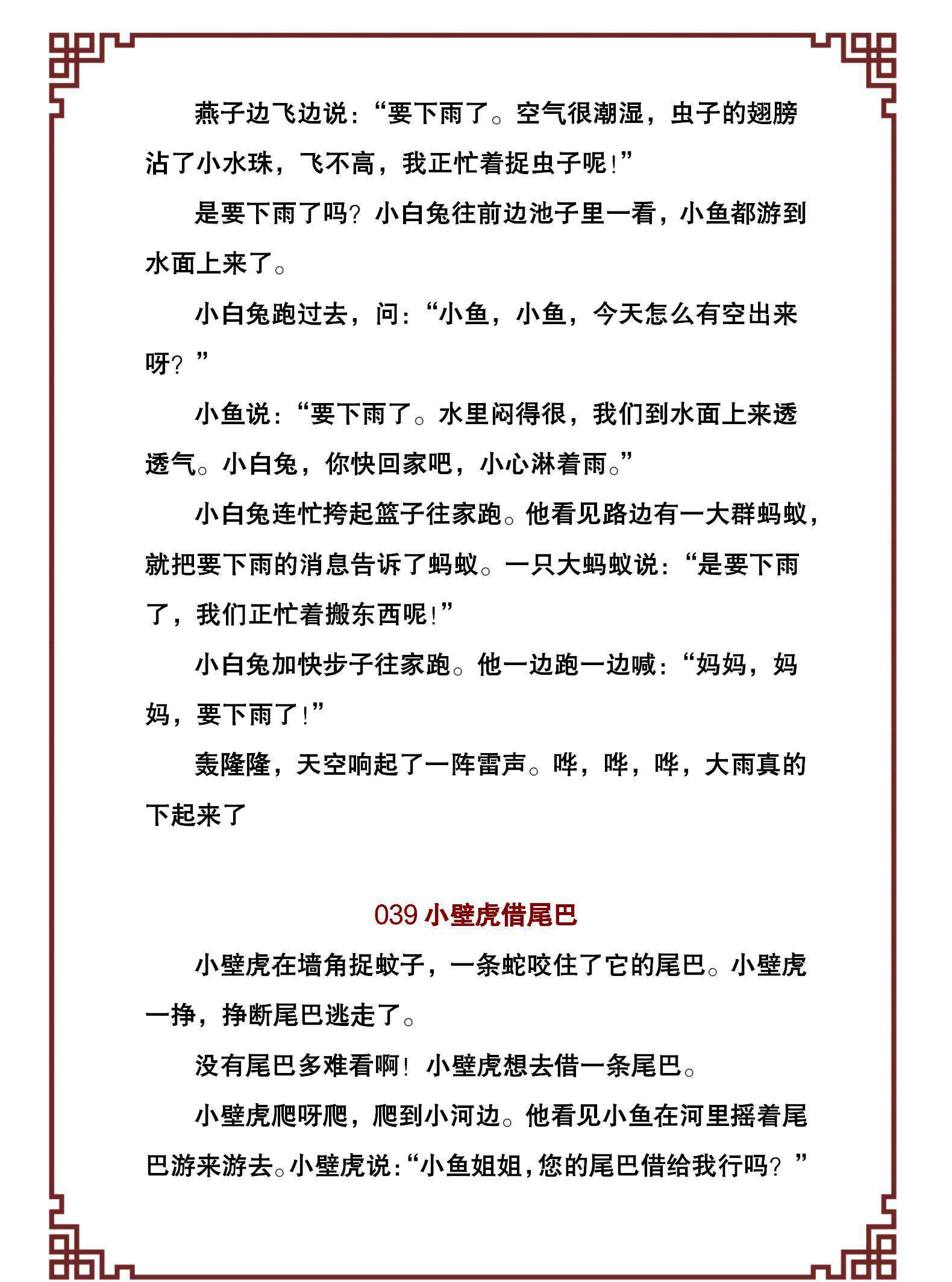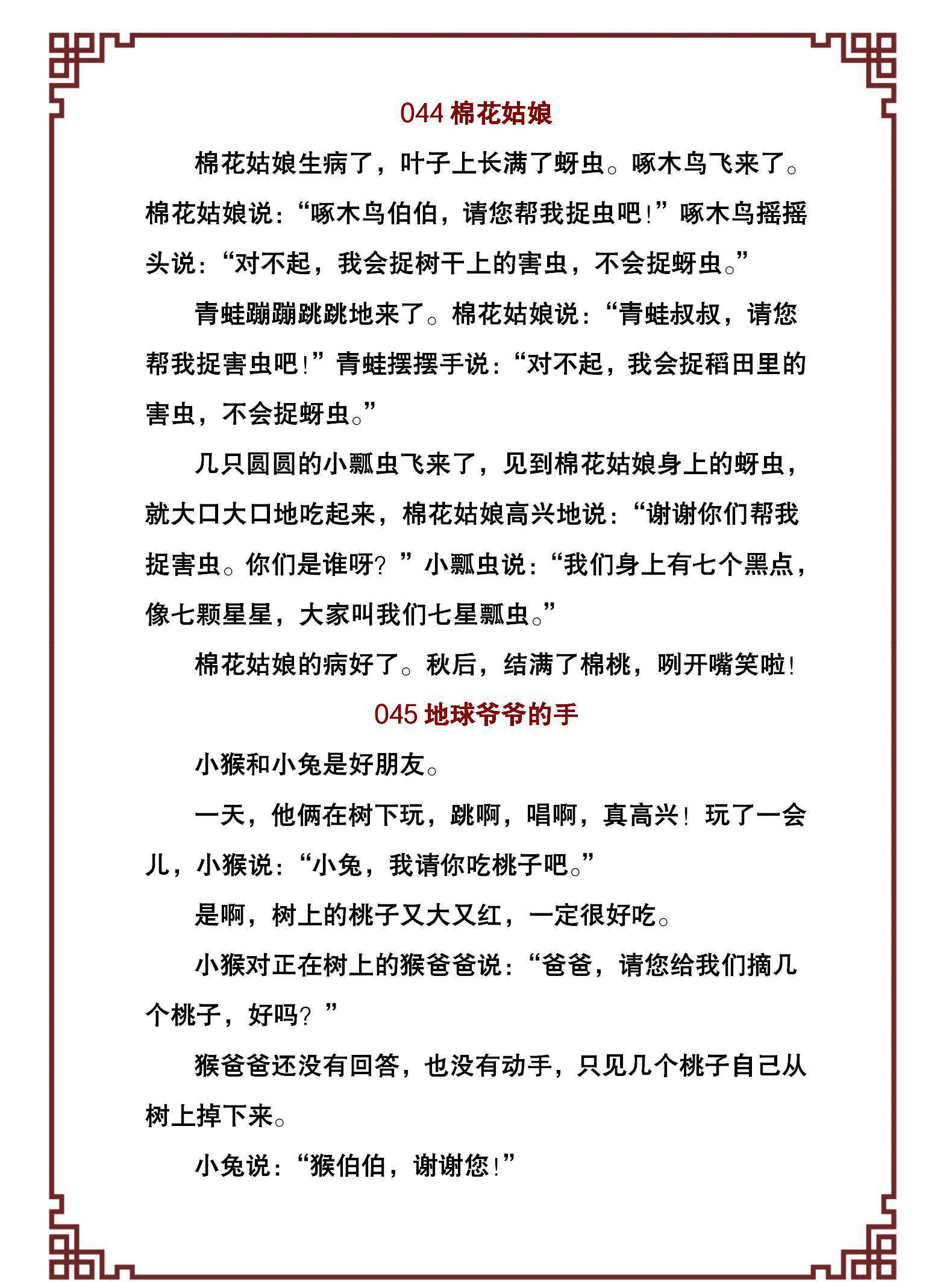 简介100个幼儿经典故事,激发孩子的好奇和学习兴趣,引导孩子爱上阅读故事可以激发孩子的好奇心,也激发学习兴趣,经典故事效果更好,家里有幼儿或小学生的家长们可以收藏保存,这100个幼儿精典故事,每天讲一个故事,讲给孩子听,为将来上小学奠定良好的基础,也为将来积累写作素材。100张图片,文章有点长,感兴趣的...