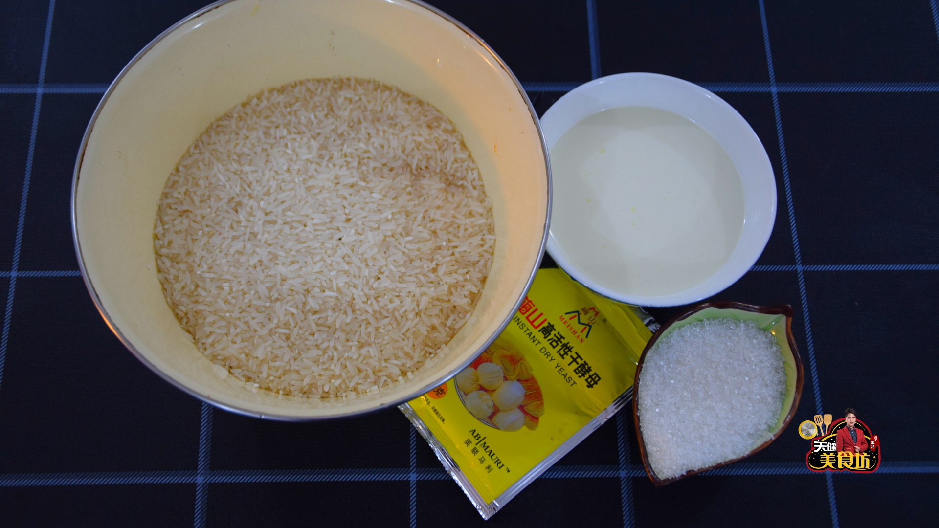 在开始正式制作之前呢,我们首先需要准备以下食材:大米1000克,纯牛奶250毫升,酵母5克,白糖50克