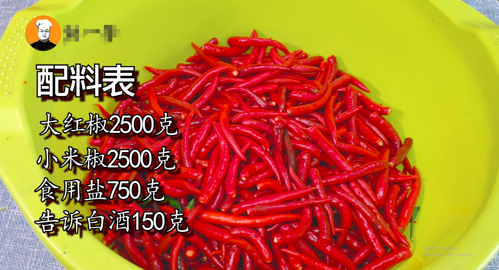 大红椒2500克、小米辣2500克、食用盐750克、高度白酒150克