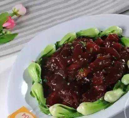 3.将煨至好的蹄筋选出,去掉大料,待汁收干,加入水淀粉勾芡,淋上明油,装盘即可。