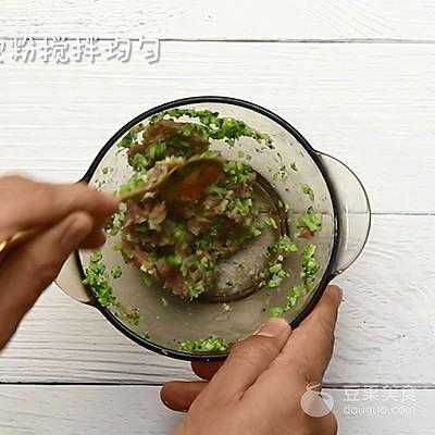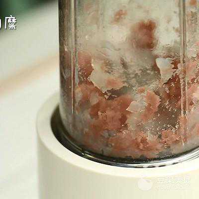 6、把切成丁的猪柳和青虾仁一起放进搅拌机里搅打成肉糜。