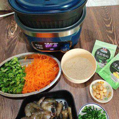 小贴士大米提前浸泡2小时,减少煮的时间不喜欢咬到姜片,用了姜粉代替干贝有咸味不需要另外加盐