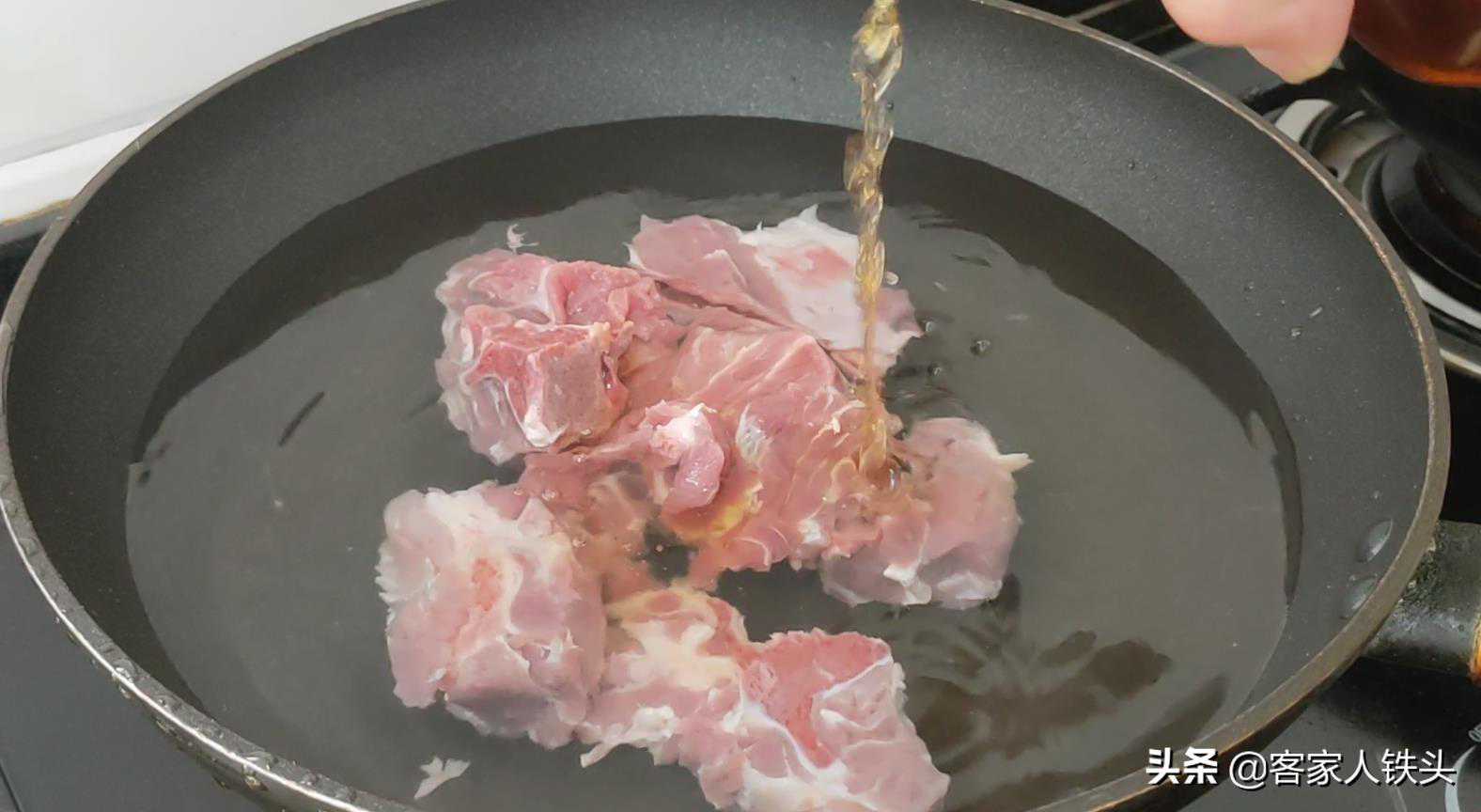 第五步:最后来处理扇骨,准备一斤左右,清洗干净后冷水下锅,再加点料酒进去,大火烧开后把它煮上3分钟左右,水开后表面会有大量的浮沫,我们要把它打掉,时间到就可以关火了,把骨头捞出来清洗一遍,用温水洗,这样肉质才不会柴,浮沫大家也可以不用撇去,但清洗时就比较麻烦了。
