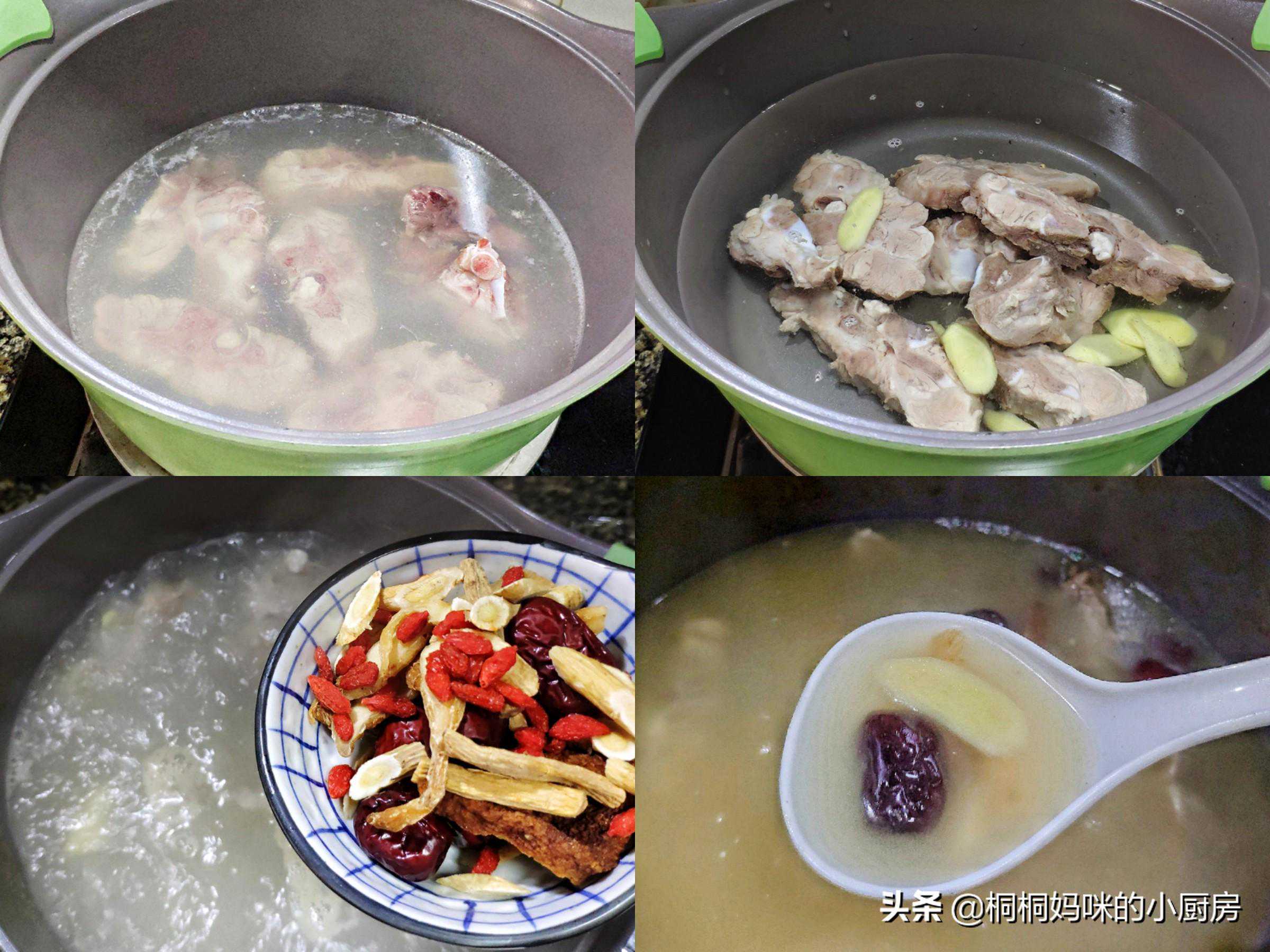 材料:排骨头、姜、红枣5个、枸杞10克、党参10克、玉竹10克、黄芪10克