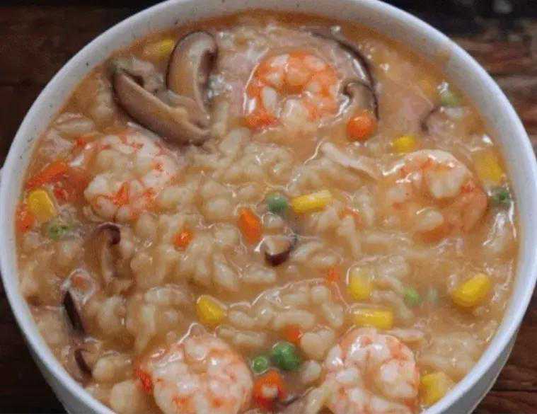 2、五彩虾仁粥的做法: