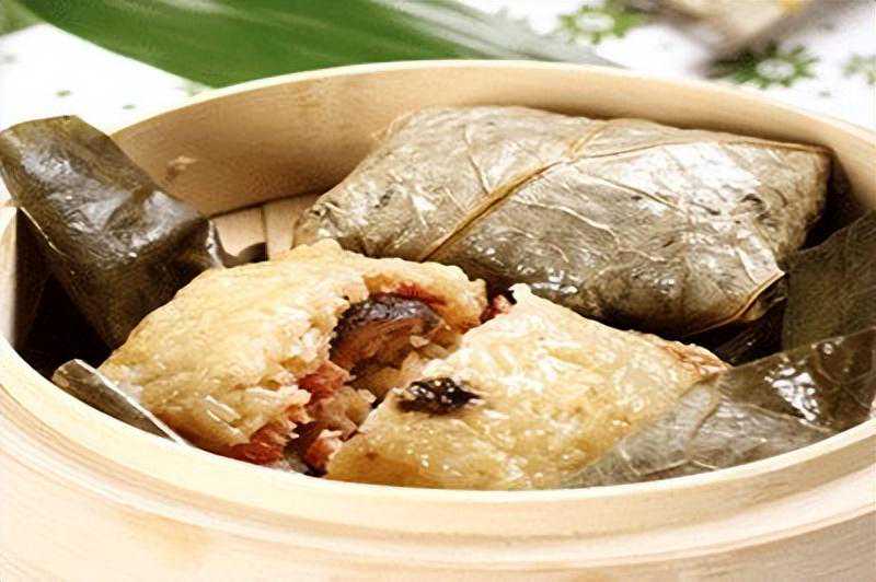 糯米鸡由糯米包裹鸡肉、叉烧肉、香菇等馅料制成,放在蒸笼上蒸熟,既有糯米荷叶的清香,又有鸡肉的肉香,鲜味四溢,糯米润滑可口。