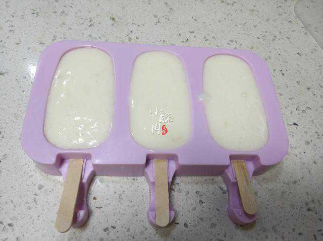 棉花糖完全融化以后,牛奶会变得很粘稠。然后用米漏过滤一下,倒入雪糕模具中,盖上盖子,放入冰箱冷冻2小时以上即可。